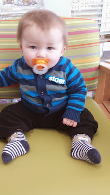 I blended up some "turkey dinner" for the boys and you should have seen the looks on their faces! They took a couple bites and were just not having it. Oliver closes his eyes and locks his mouth when he doesn't like what I try and feed him.... once he figured out he didn't like mama's puree he wouldn't eat anymore! Elliott took a couple bites too but preferred eating the mashed potatoes by himself. Oliver played with his, but I don't think any made it into his mouth
